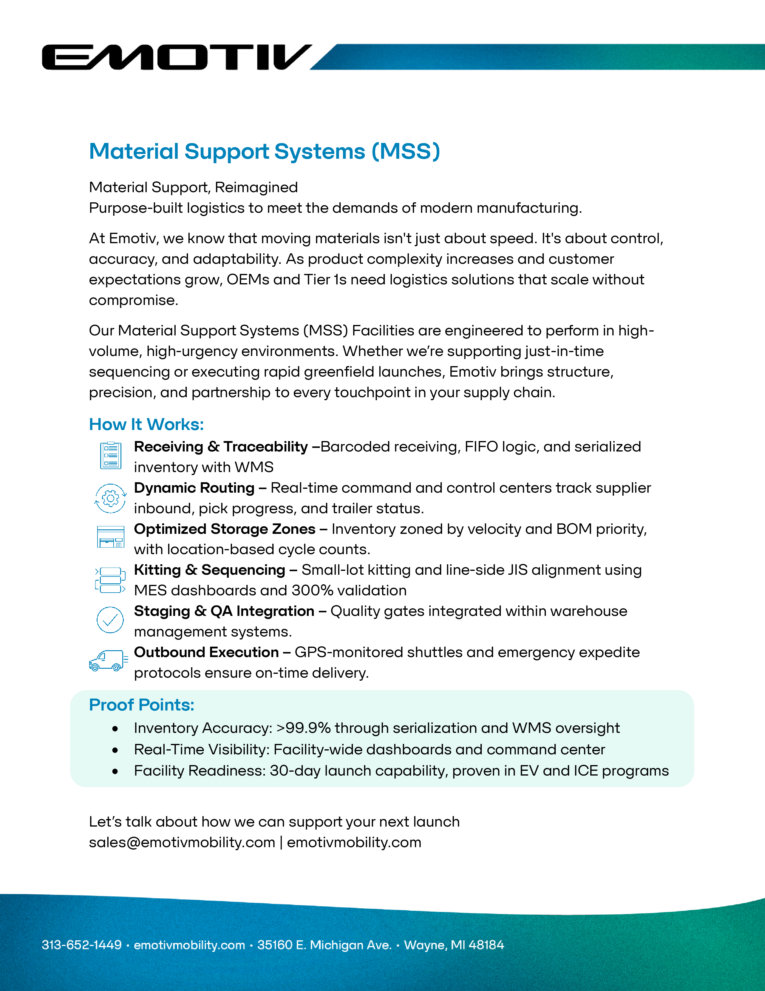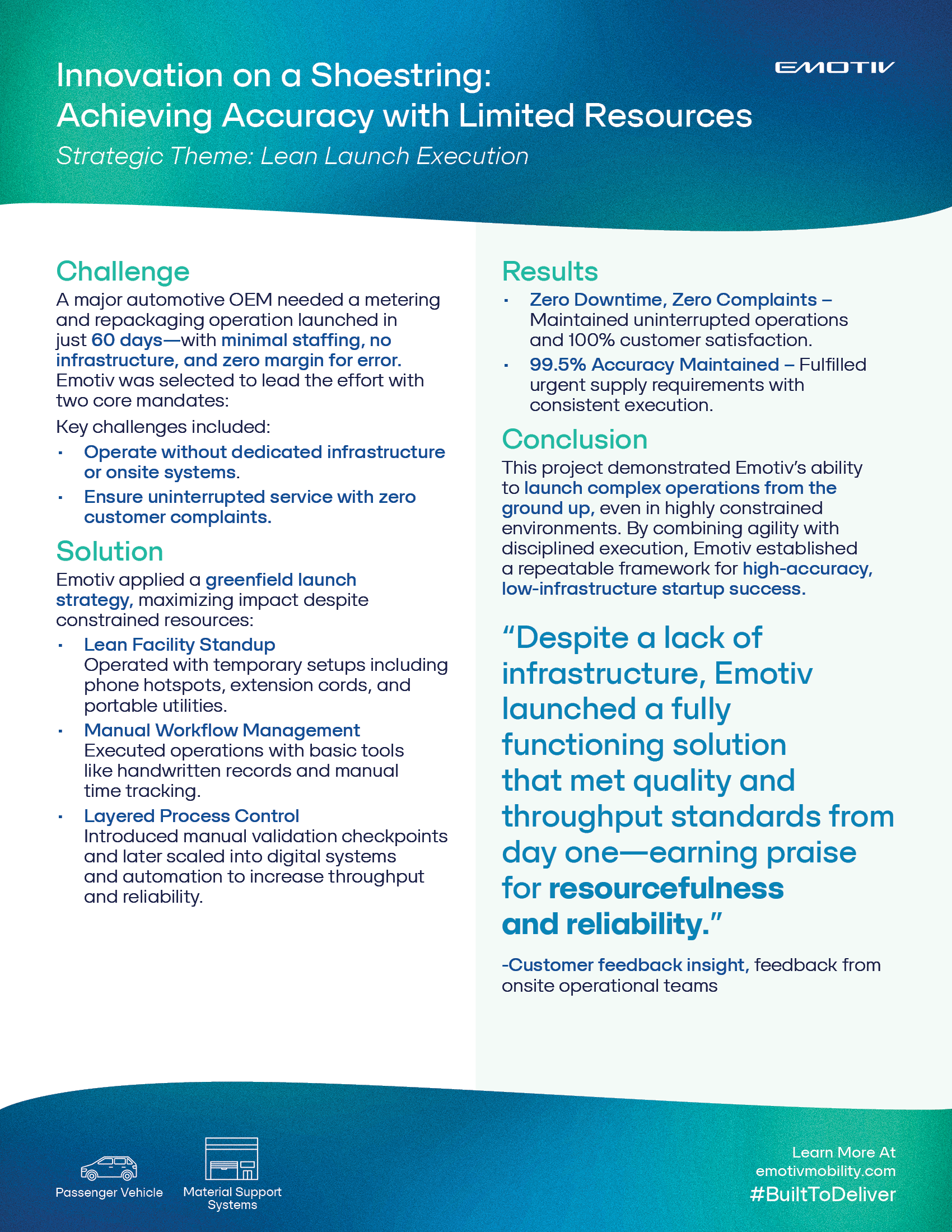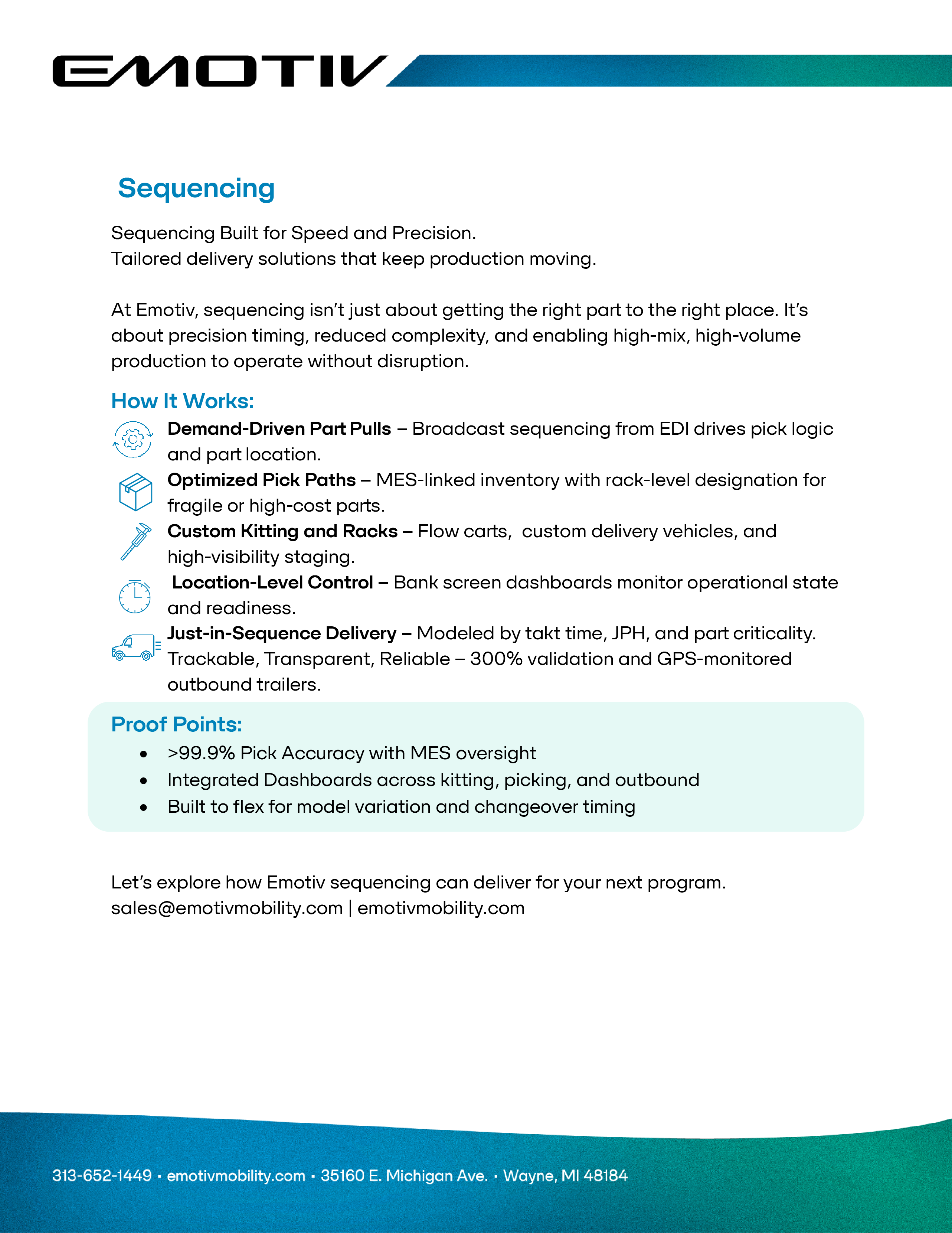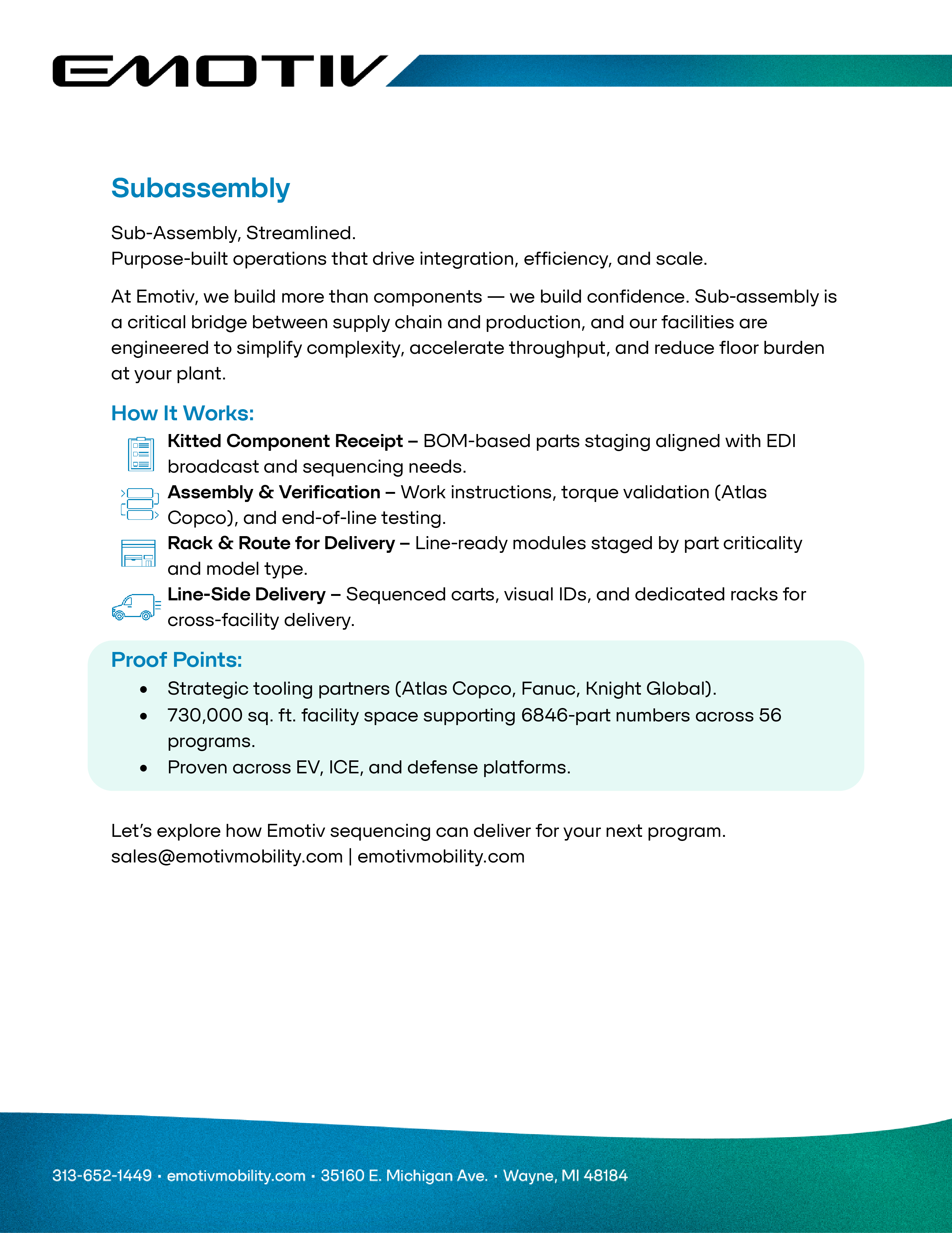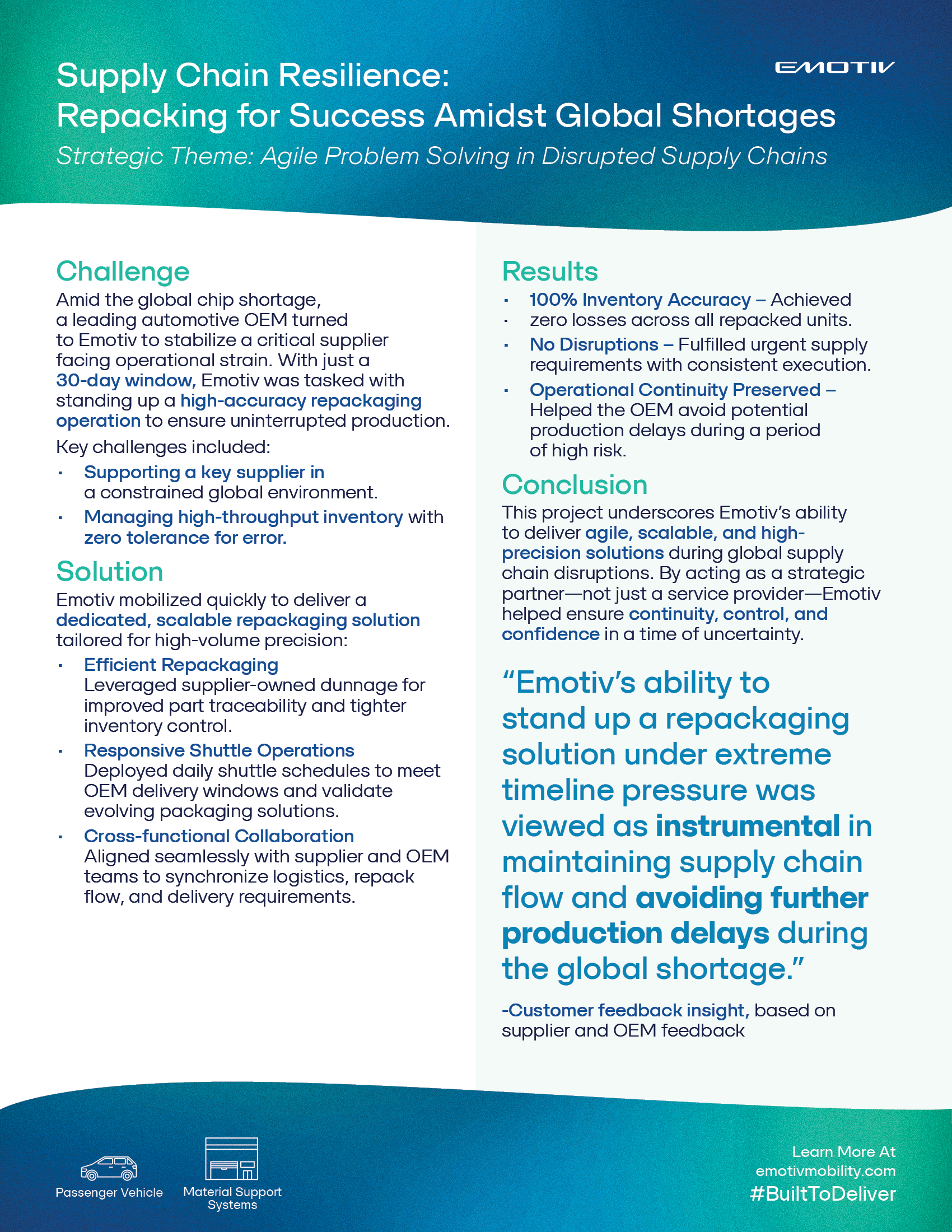 Emotiv is a global leader in transportation innovation, offering forward-thinking solutions like value-added assembly, 3PL services, and sustainable advancements for industries including automotive, aerospace, and energy.